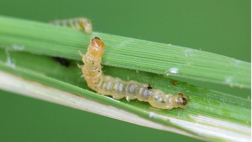• စပါးရွက်လိပ်အိမ်ပိုးသည် အပင်ကြီးထွားမှု အဆင့်တိုင်းတွင်ဖျက်ဆီးနိုင်သည်။