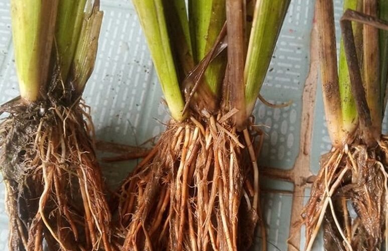 • အမြစ်မျက်နှာပြင်များမှာ အိုင်းယွန်းဆာလဖိုဒ် (Fe2S) ကြောင့် အမဲရောင်များဖြစ်ပေါ်စေပြီး အပင်ကြီးထွားမှု ရပ်ဆိုင်းကာ ပင်ပွားများနည်းလာစေခြင်း