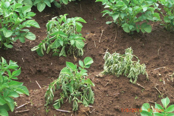 အာလူးစိုက်မည့် အစိုဓာတ်ရှိသောမြေပြင် သို့မဟုတ် ဘောင်ပေါ် ဘောင်အောက်တစ်ခုလုံး ဆေးဖျန်းပုံးတစ်ပုံးလျှင် မက်တယ် ၁၂၀ စီစီနှုန်းဖြင့်ဖျန်းပါ။